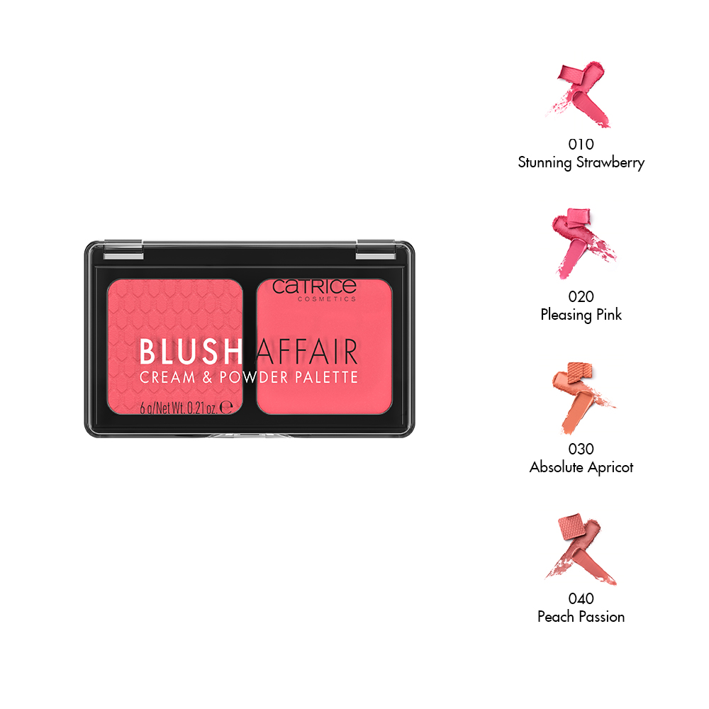 - Bảng má hồng kết hợp dạng kem và phấn Catrice Blush Affair Cream & Powder Palette, tiện lợi và nhỏ gọn với 4 tông màu đa dạng và thời thượng.