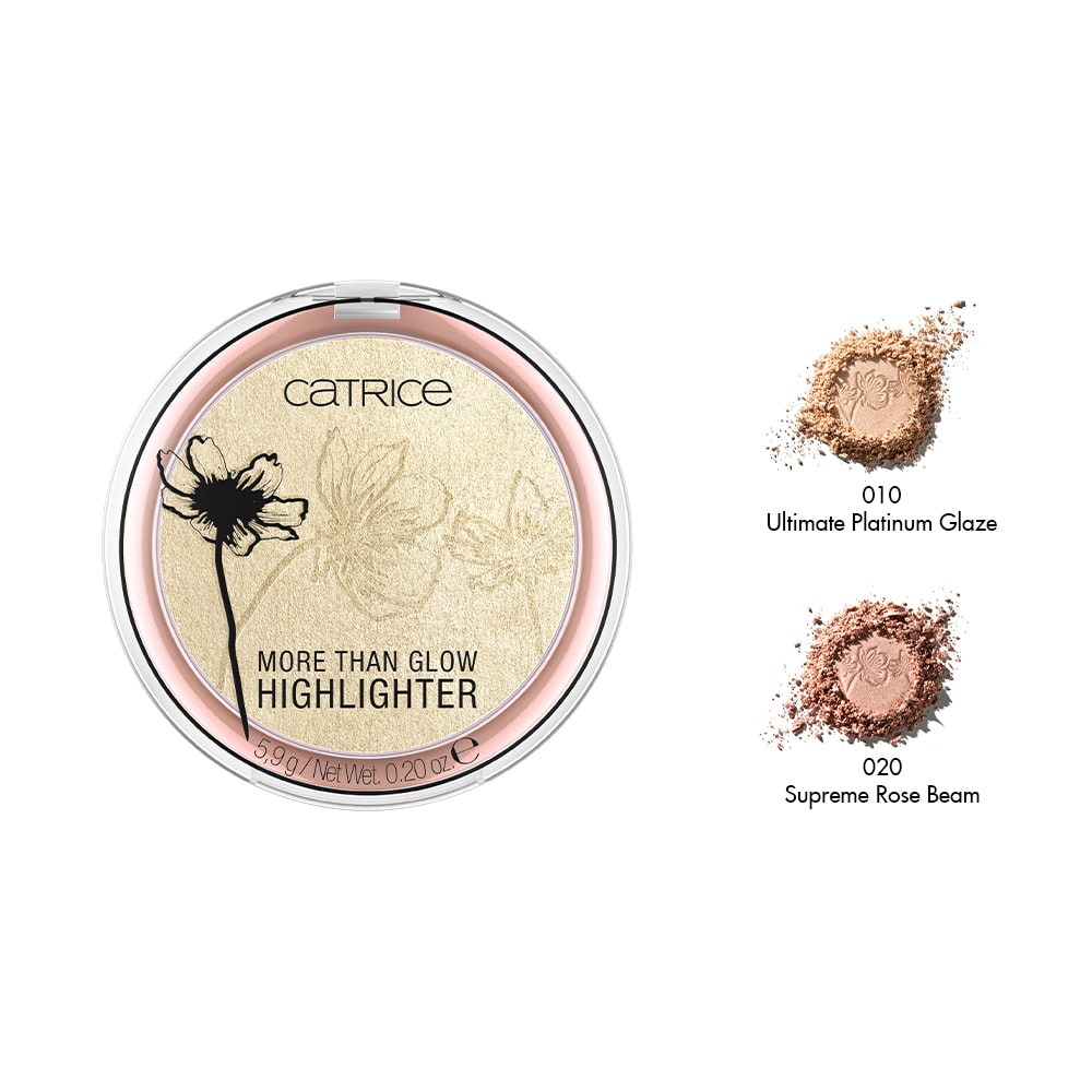 - Phấn bắt sáng Catrice More Than Glow Highlighter với chất phấn mịn, hạt nhũ li ti mang lại hiệu ứng bắt sáng nổi bật